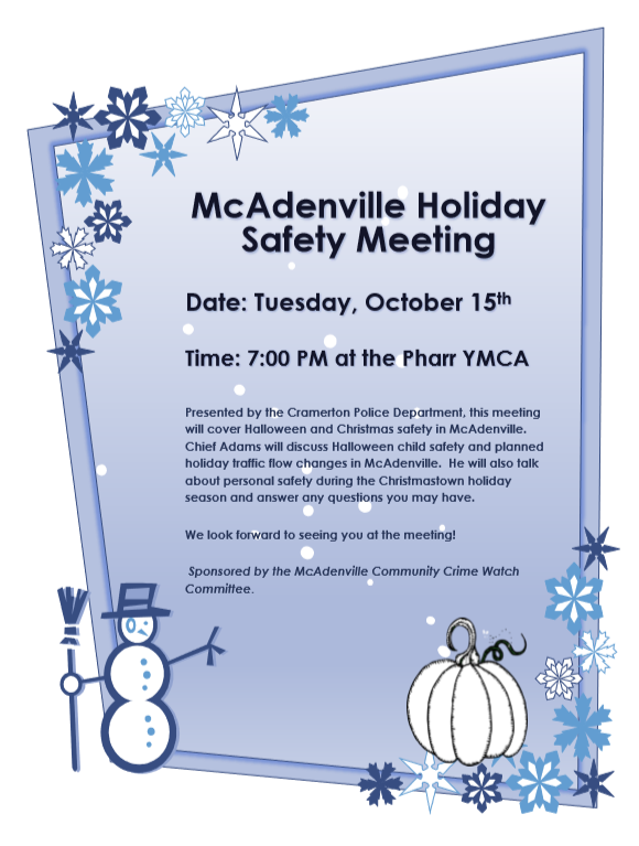 Like and follow us on Facebook for McAdenville Community Crime Watch alerts and updates: https://www.facebook.com/McAdenville-Community-Crime-Watch-100168638028433/